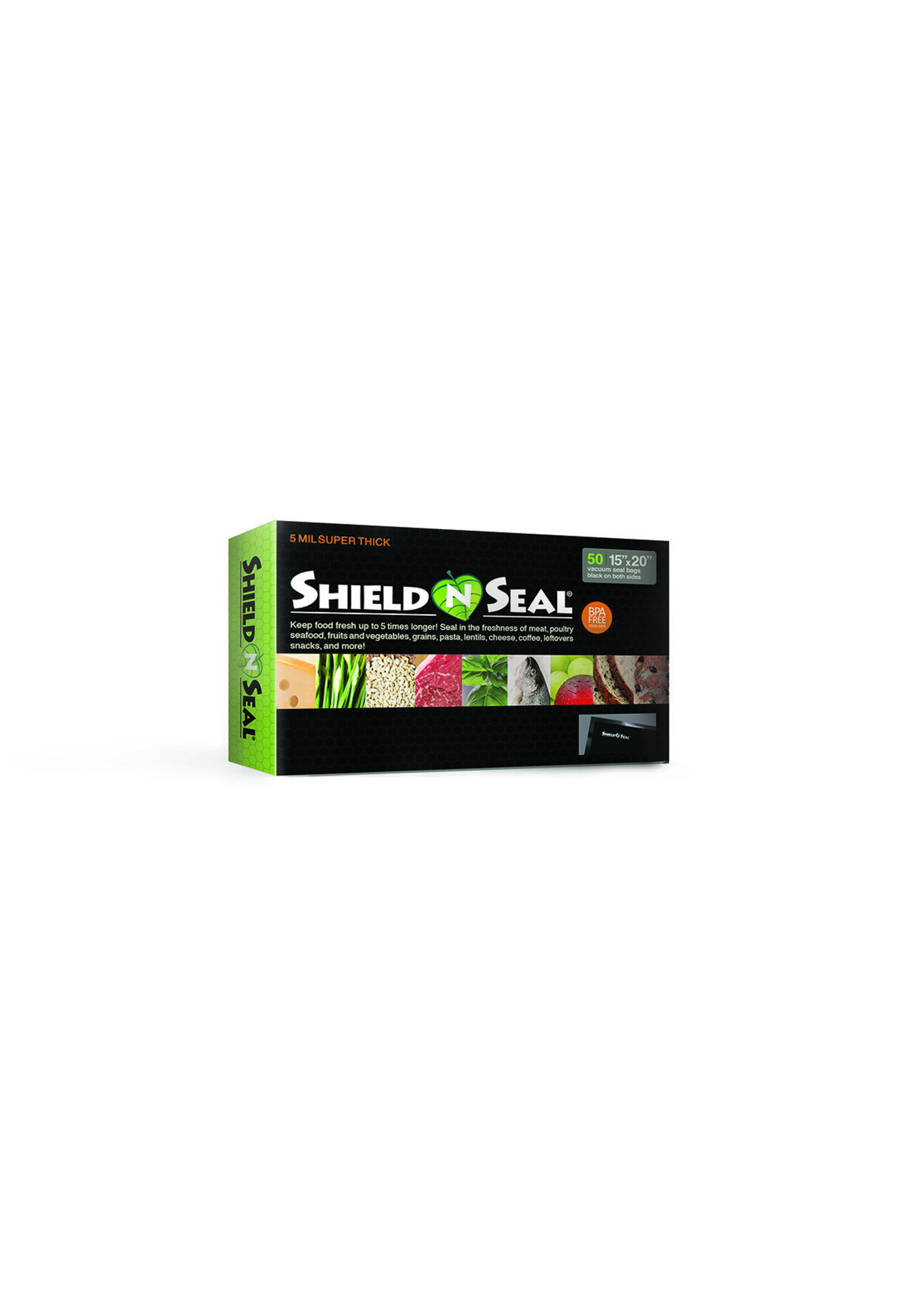 Shield N Seal’s All Black Vacuum Sealer Bags are perfect for long term storage of food and perishables. These bags are the thickest, BPA free, food grade heat seal bags. Studies have shown that properly vacuum sealed food can stay fresh up to 5x longer, sometimes 10x longer.